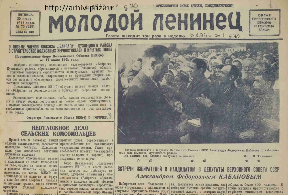 2 февраля 1940 года – вышел первый номер газеты пензенской организации ВЛКСМ «Молодой ленинец» в Пензе.