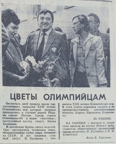 После окончания олимпиады Ирину Калинину и ее наставника в Пензе ждали торжественная встреча с цветами на вокзале Пенза-I, а также государственные экзамены факультета физической культуры Педагогического института.