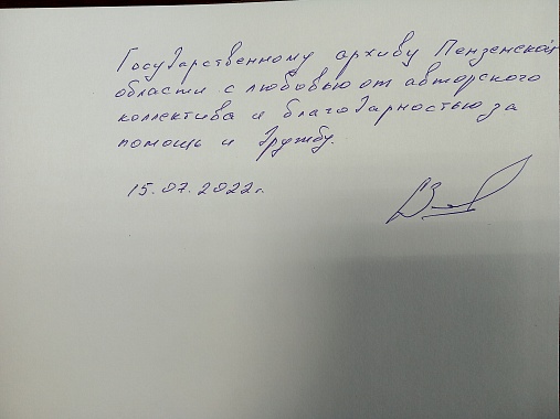 Пензенский краевед - архивист, церковный историк, публицист Сергей Зелев передал в научно-справочную библиотеку Государственного архива Пензенской области экземпляр книги Сосновоборской энциклопедии «Под сводом векового бора.».