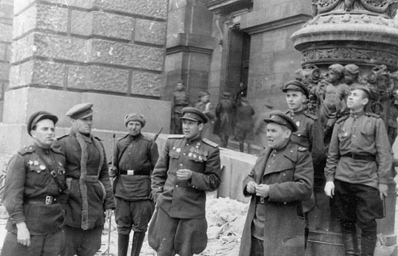 на фото : Герой Советского Союза Николай Панфилович Хазов (в центре) у Рейхстага. 1945 г.