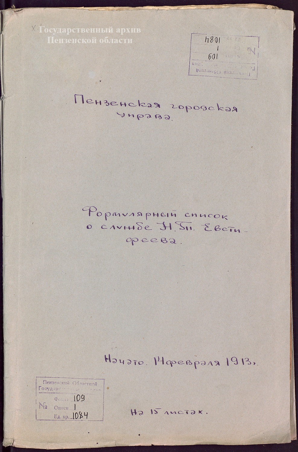 В государственном архиве Пензенской области в фонде Пензенской городской думы сохранились разнообразные документы, связанные с деятельностью Евстифеева Н.Т. Подробнее с ними вы можете ознакомится в читальном зале нашего архива.