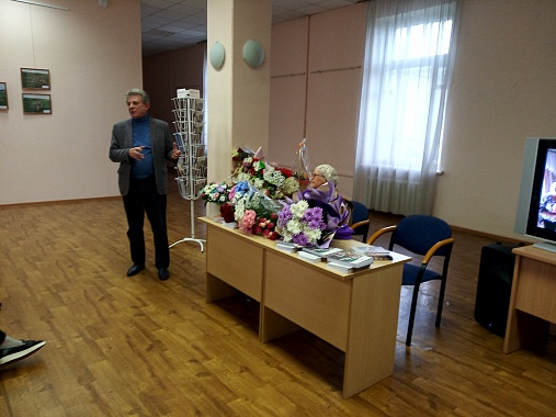 Историк, краевед, педагог Александр Волков, выступавший в роли ведущего, рассказал о творческой биографии, интересных моментах жизни Марии Леонидовны и ее прославленного супруга.