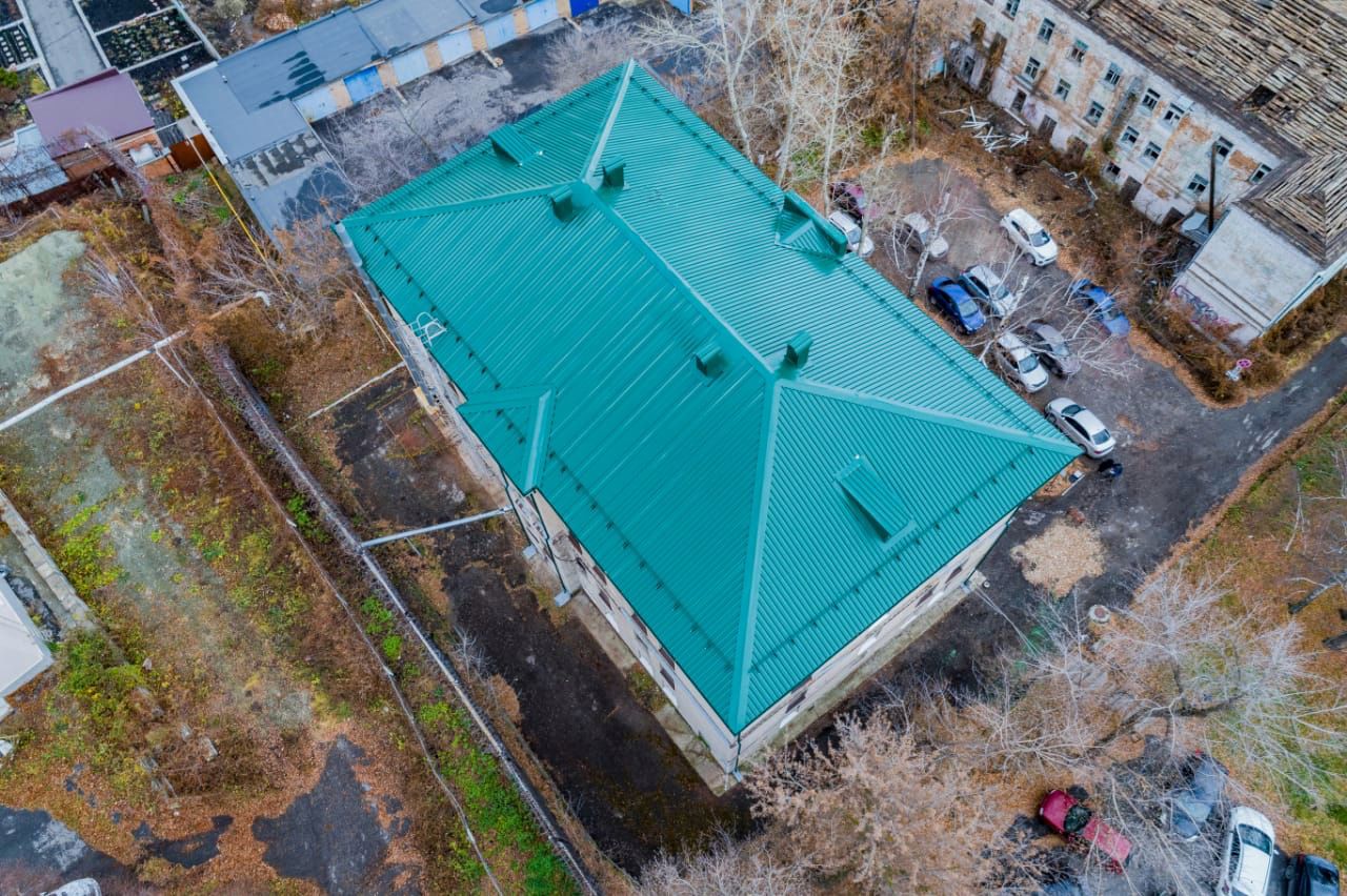 Завершен ремонт крыши здания бывшего партийного архива по адресу ул. Володарского 12а, сданное в эксплуатацию еще в 60-е годы.