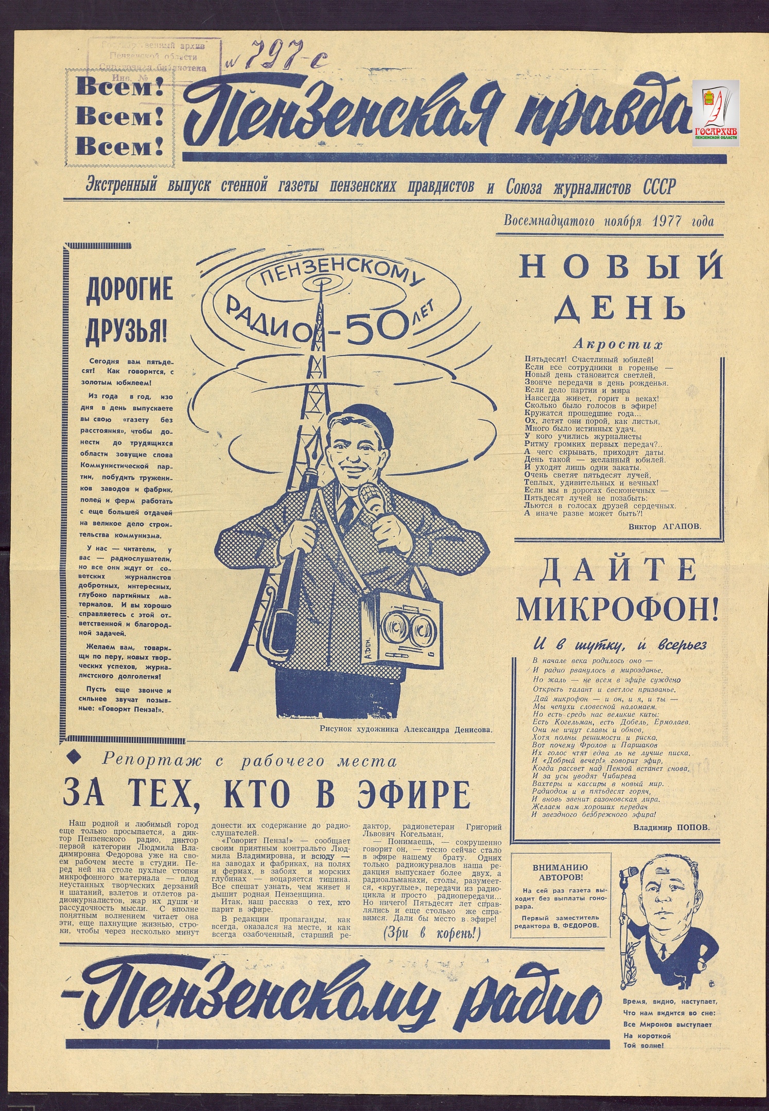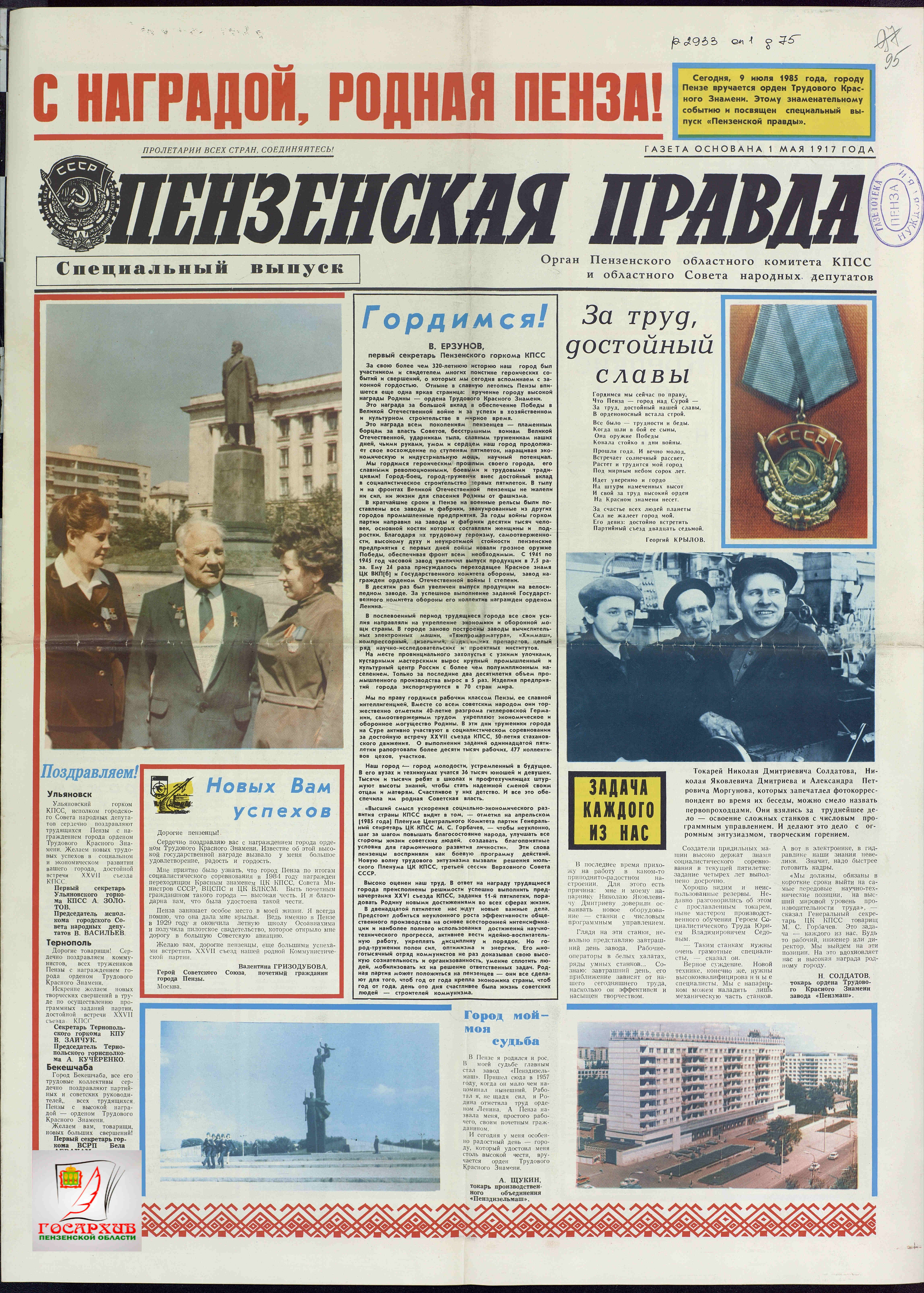 Коллектив ГБУ «Государственный архив Пензенской области» поздравляет всех причастных с Днем российской печати. В этот день мы хотим пожелать всем смелых начинаний, продуктивности и реализации всех планов! Пусть ежегодно выходит больше интересных, актуальных изданий в разных жанрах! Вдохновения, смелости, успехов и благодарных читателей.